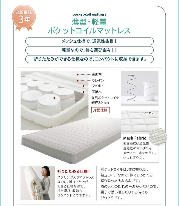 薄型軽量ポケットコイルマットレス付き 上下段セット シングル