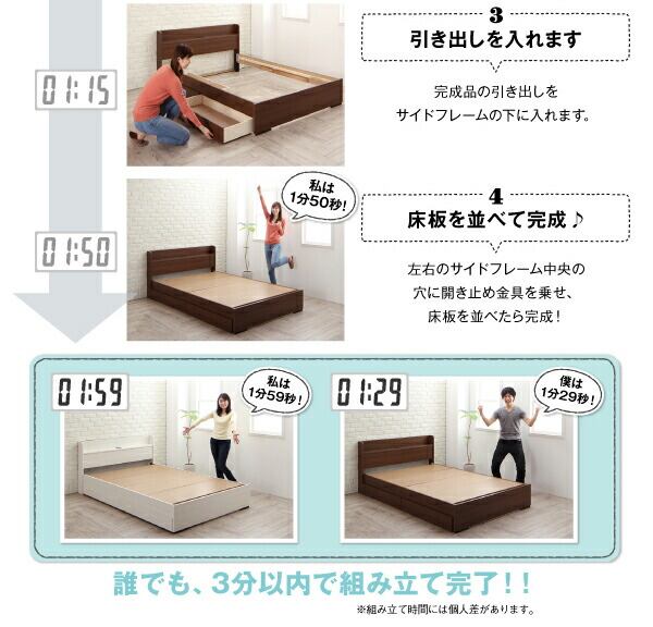 工具いらずの組み立て・分解簡単収納ベッド 国産ポケットコイルマットレス付き シングル