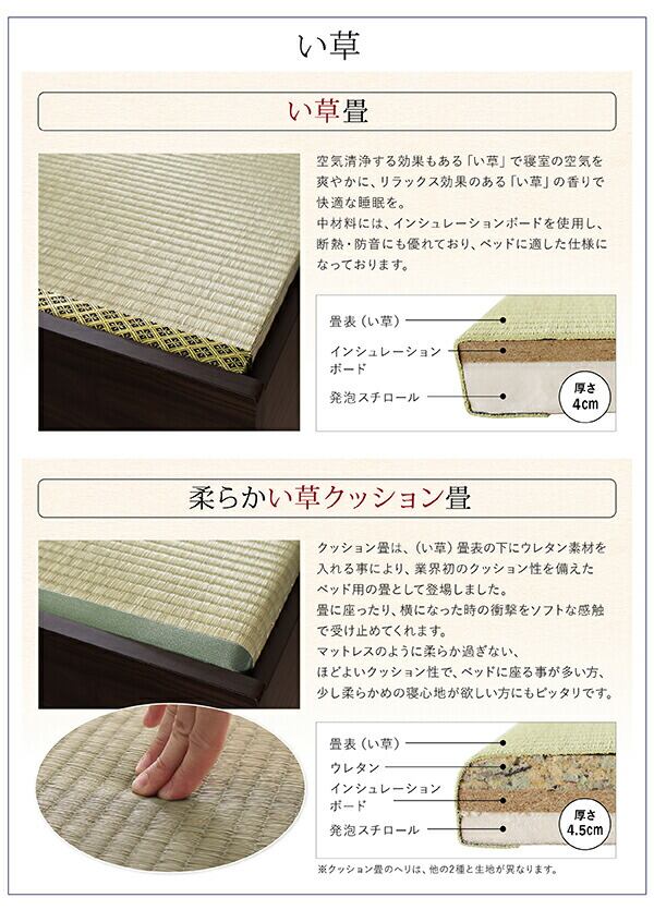 お客様組立 日本製・布団が収納できる大容量収納畳ベッド い草畳 セミダブル 42cm