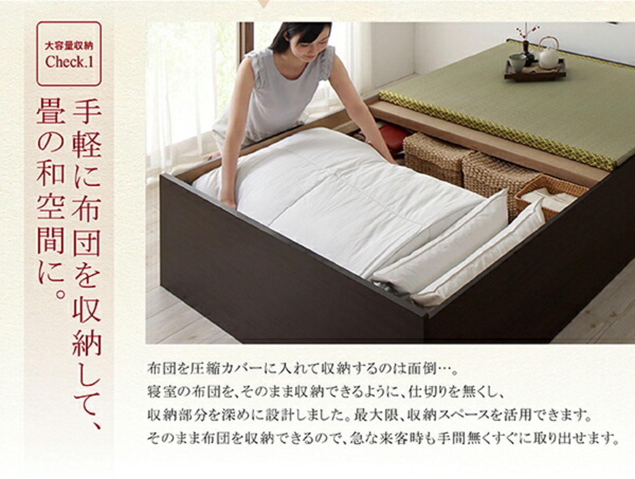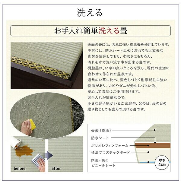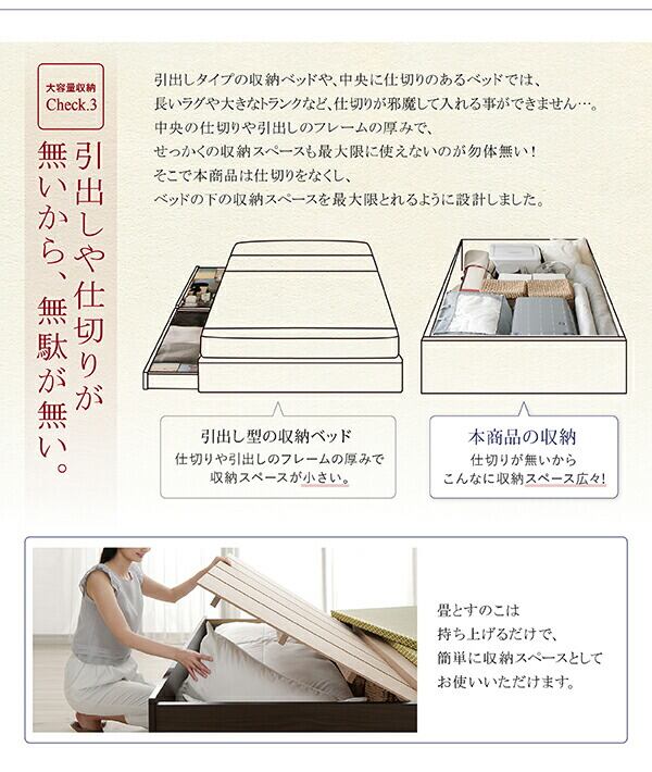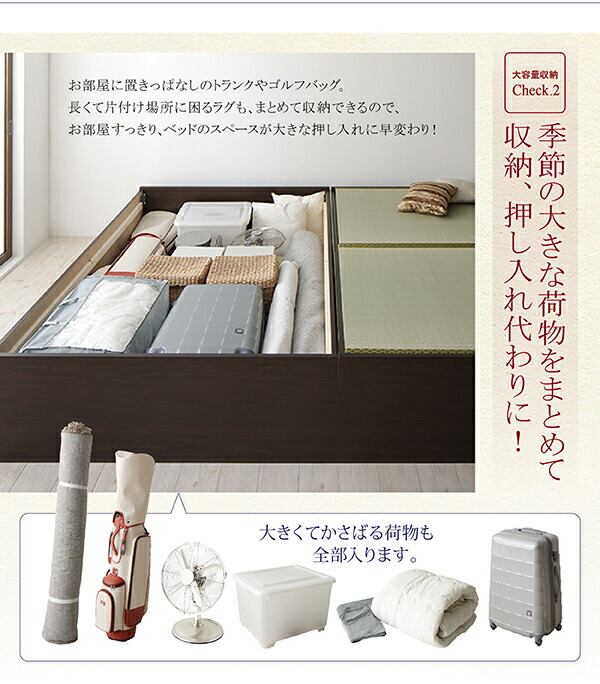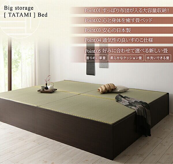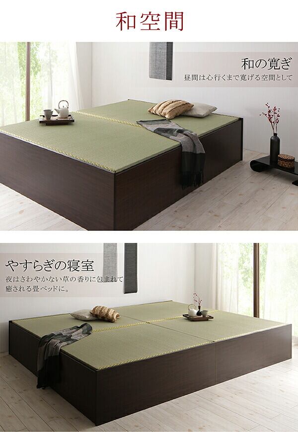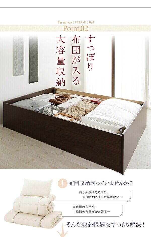 お客様組立 日本製・布団が収納できる大容量収納畳ベッド い草畳 セミダブル 29cm