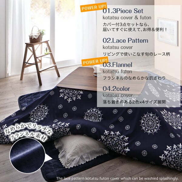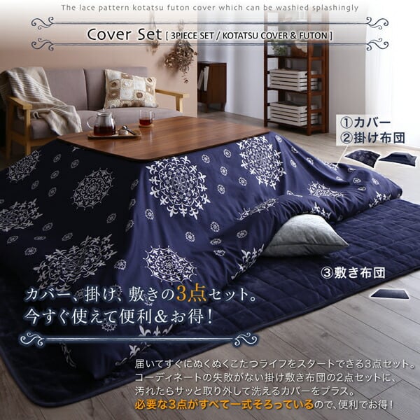 こたつ こたつ布団 こたつ布団カバー おしゃれ ザブザブ洗えるレース柄カバーシリーズ こたつ布団カバー単品(布団は別売) 4尺長方形(80×120cm)天板対応