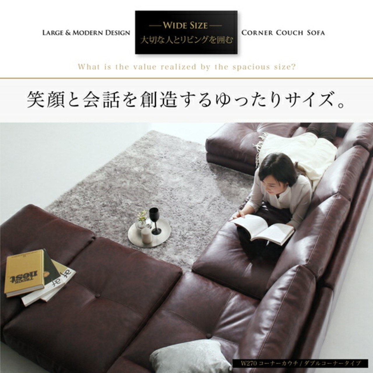 レイアウト自由 家族でリビングを囲める大型コーナーカウチソファ ソファ&オットマン ダブルコーナータイプ 幅270cm