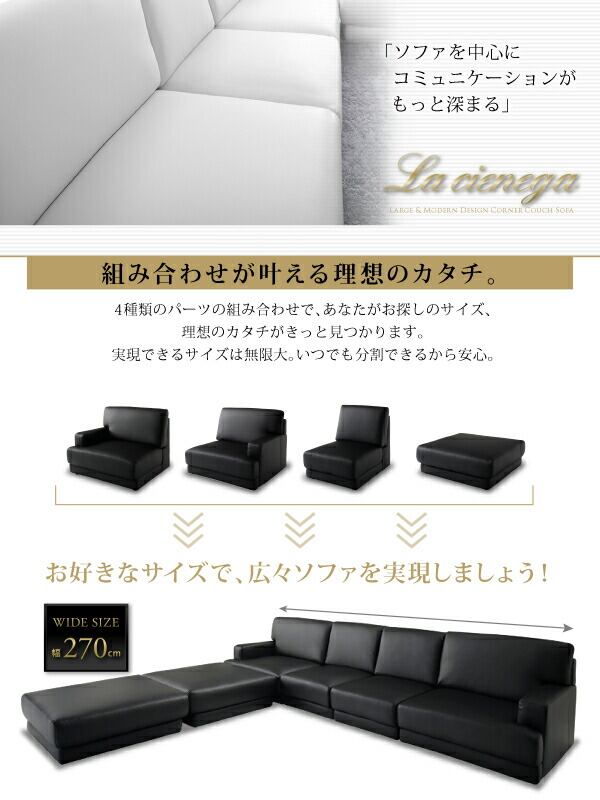 レイアウト自由 家族でリビングを囲める大型モダンデザインコーナーカウチ ソファ 1P