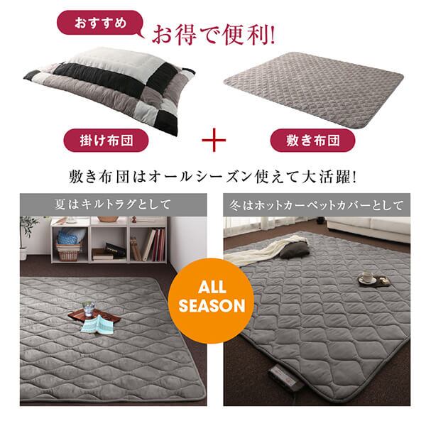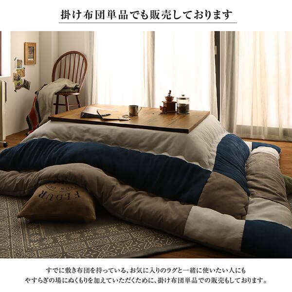 スウェード調パッチワークこたつ布団 掛布団&敷布団2点セット 5尺長方形(90×150cm)天板対応