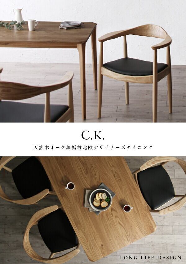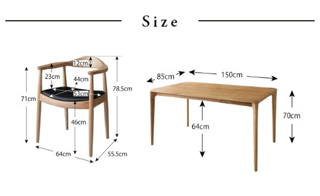 天然木オーク無垢材 北欧デザイナーズ ダイニングセット 3点セット(テーブル+チェア2脚) W150