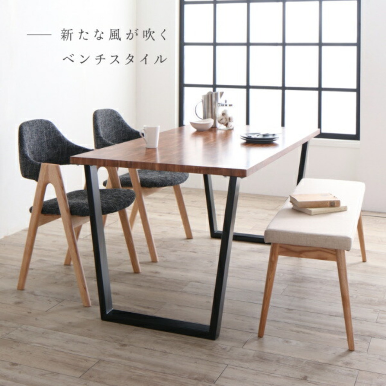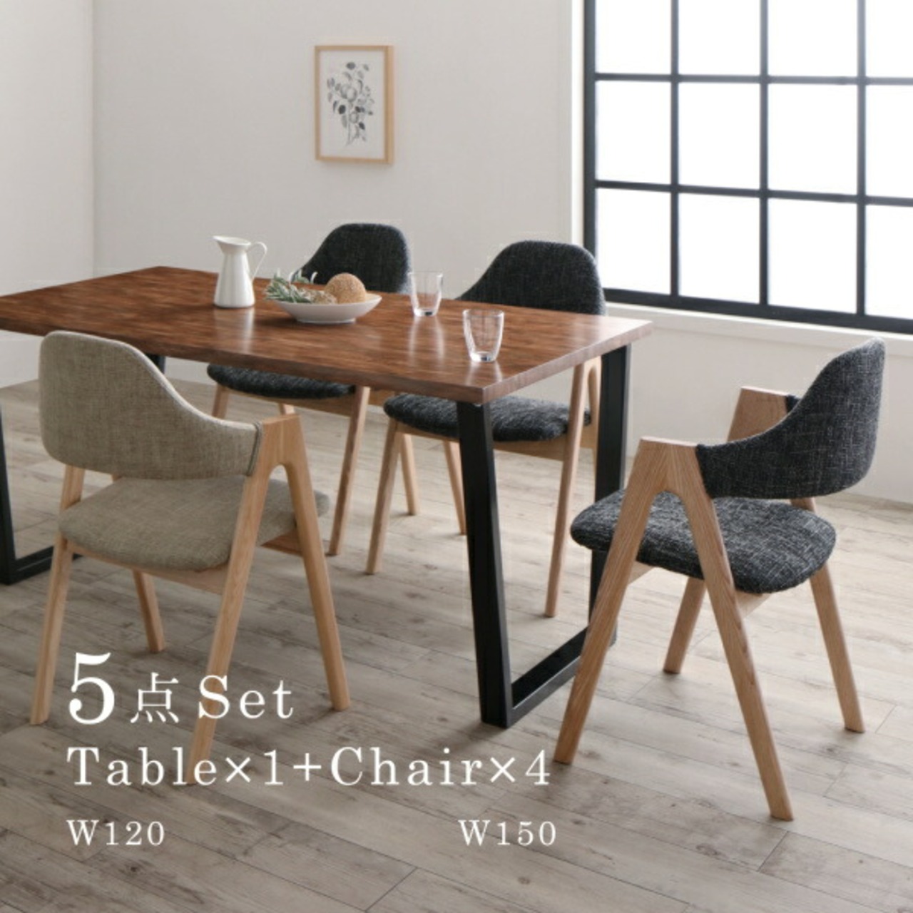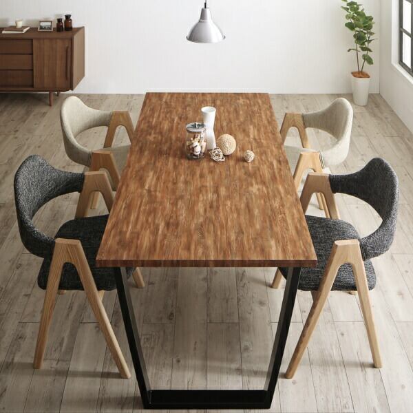 古木風×スチール脚ナチュラルモダンデザインダイニング ダイニングチェア 2脚組 NA