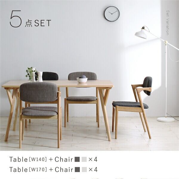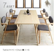 北欧ナチュラルモダンデザイン天然木ダイニングセット 7点セット(テーブル+チェア6脚) W170