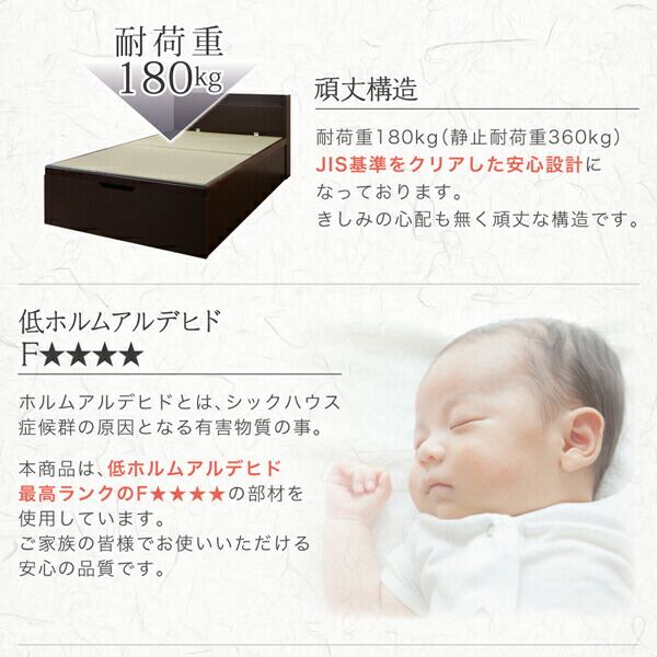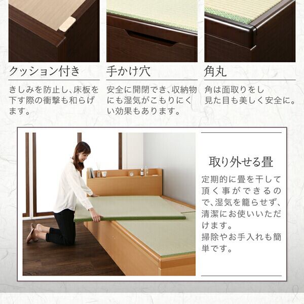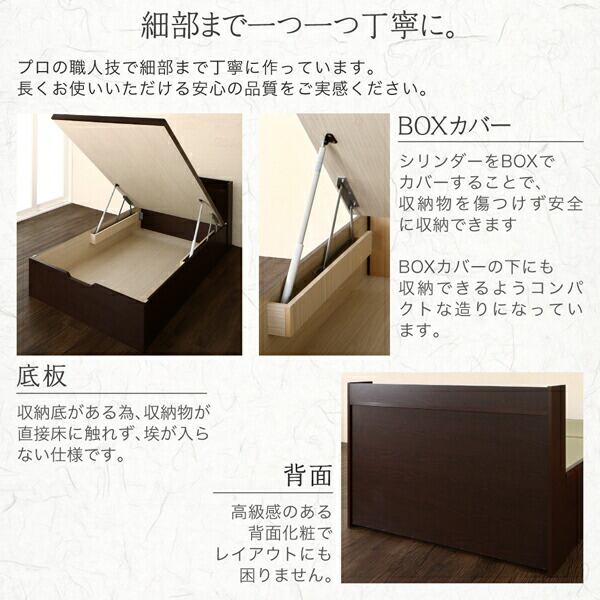 お客様組立 シンプルモダンデザイン大容量収納日本製棚付きガス圧式跳ね上げ畳ベッド 国産畳 セミダブル 深さラージ