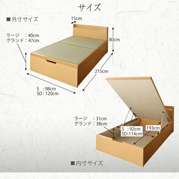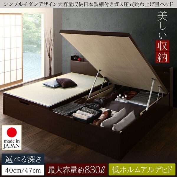 お客様組立 シンプルモダンデザイン大容量収納日本製棚付きガス圧式跳ね上げ畳ベッド 国産畳 セミダブル 深さグランド