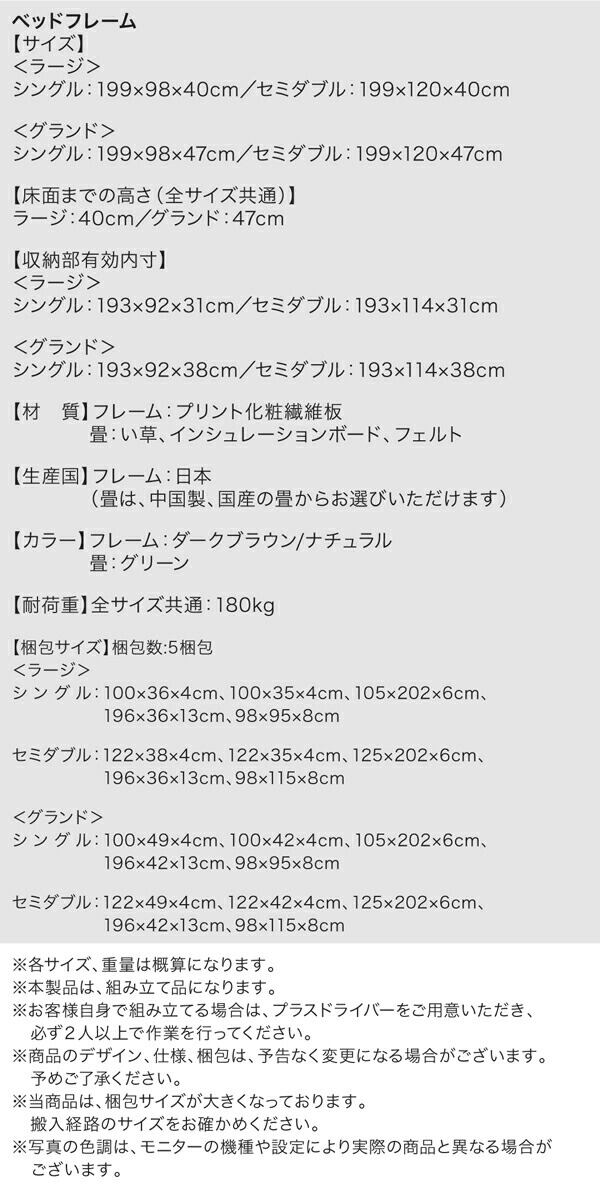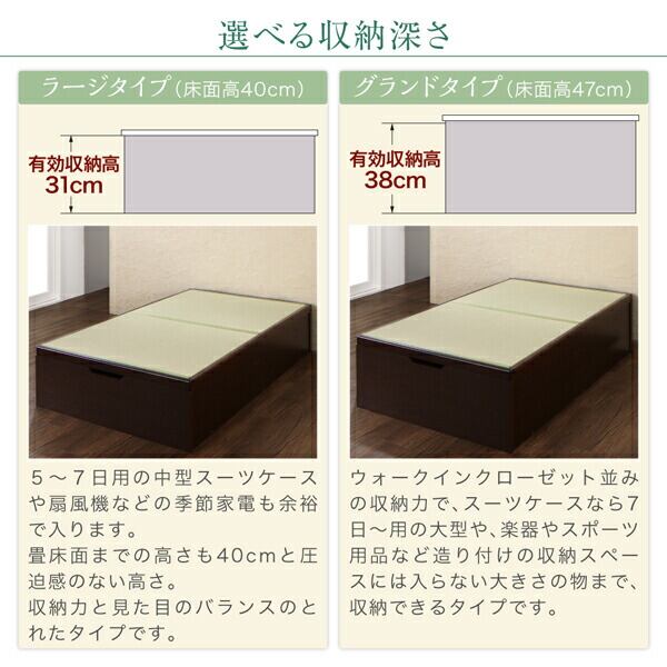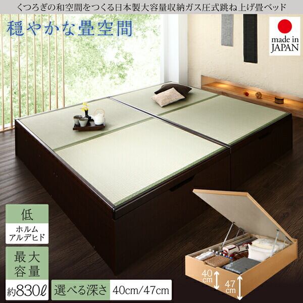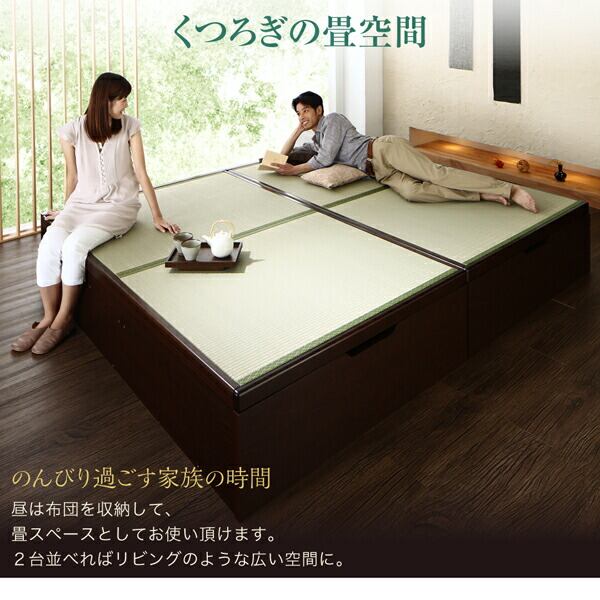 お客様組立の和空間をつくる日本製大容量収納ガス圧式跳ね上げ畳ベッド 国産畳 シングル 深さグランド