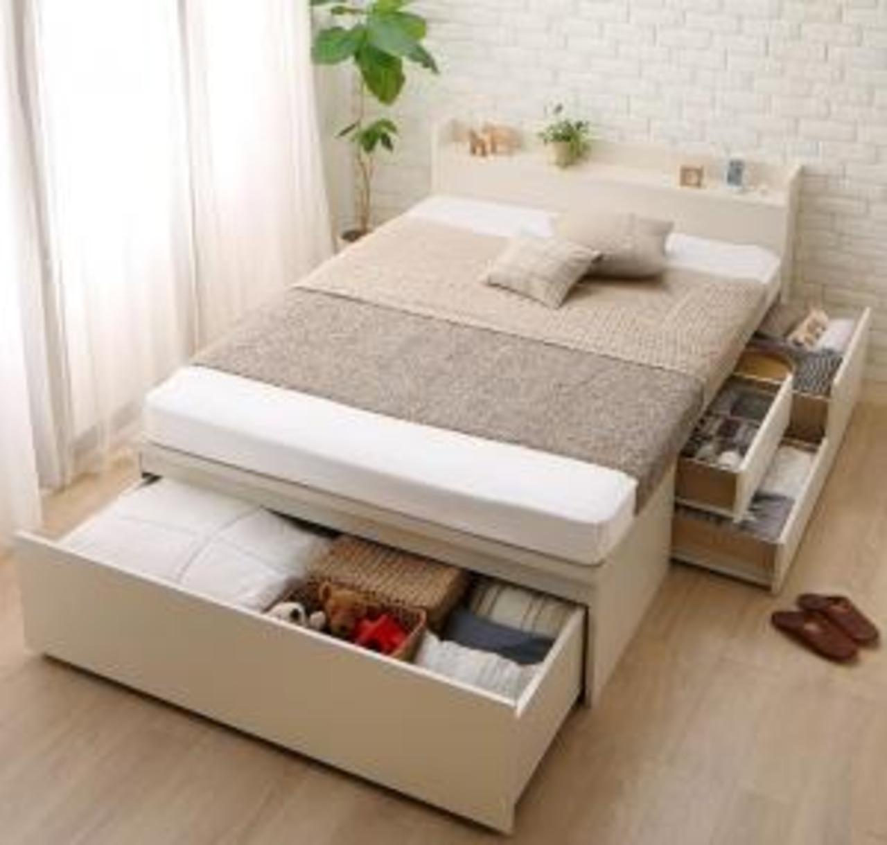 お客様組立 国産 ワイド深型引き出しチェストベッド 棚・コンセント付 Lage ラージュ 薄型プレミアムボンネルコイルマットレス付き シングル