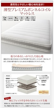 薄型プレミアムポケットコイルマットレス付き セミシングル