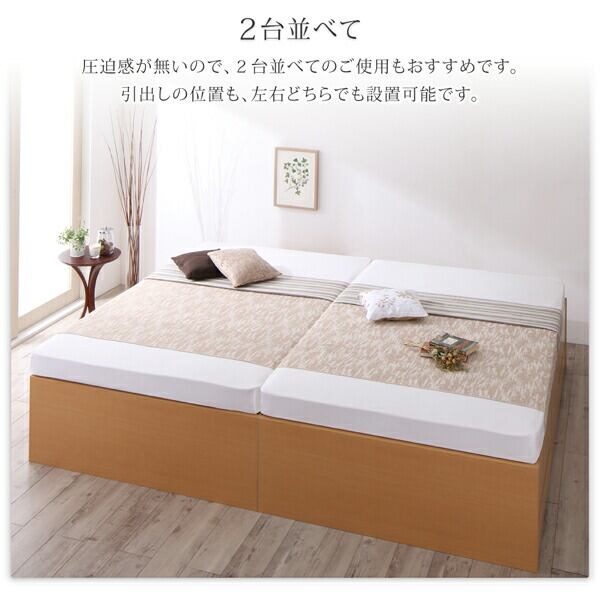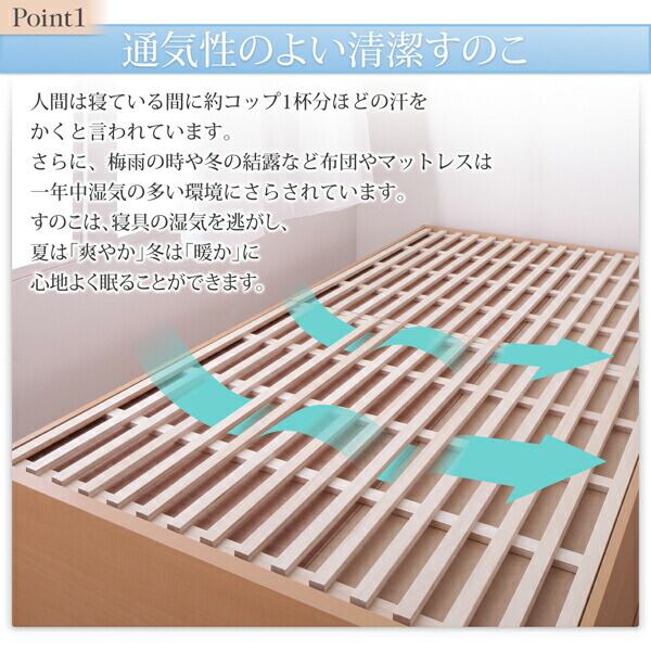 お客様組立 国産 清潔すのこ ヘッドレスチェストベッド 薄型プレミアムポケットコイルマットレス付き セミシングル