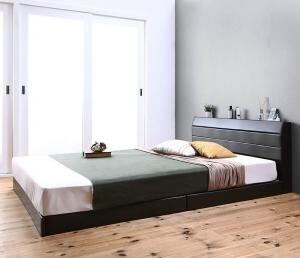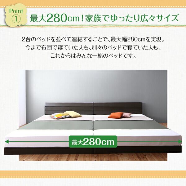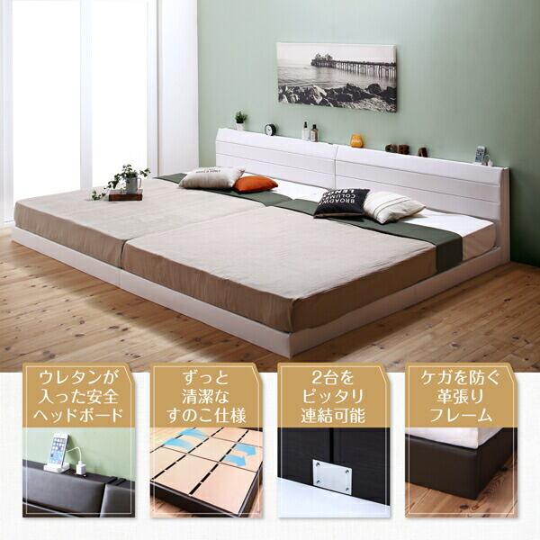 親子で寝られる棚・コンセント付きレザー連結ベッド ボンネルコイルマットレス付き セミダブル