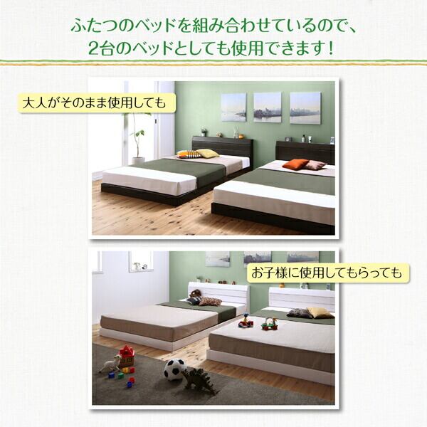 親子で寝られる棚・コンセント付きレザー連結ベッド ポケットコイルマットレス付き セミダブル