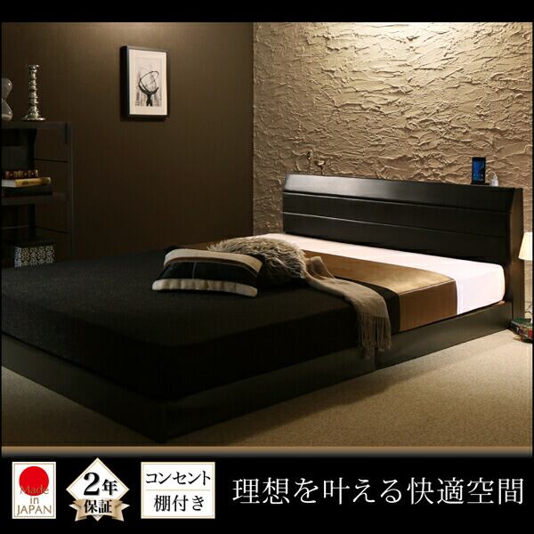 棚・コンセント付きレザーすのこベッド 国産ボンネルコイルマットレス付き セミダブル