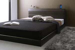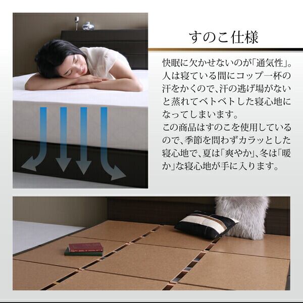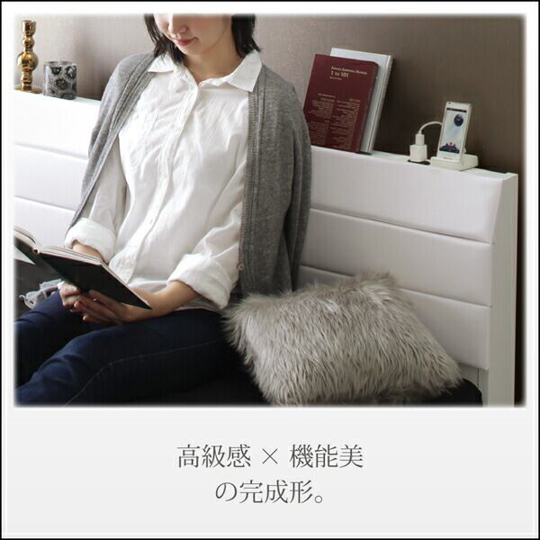 棚・コンセント付きレザーすのこベッド 国産ポケットコイルマットレス付き セミダブル