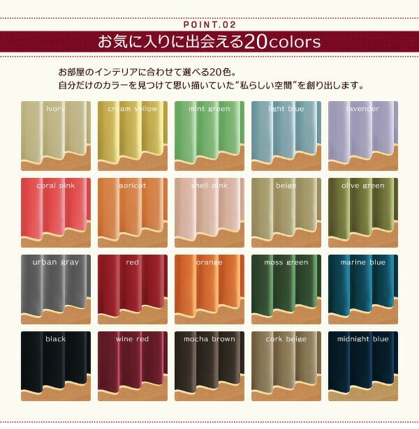 20色×54サイズから選べる防炎・1級遮光カーテン 幅200cm(1枚) 幅200×120cm
