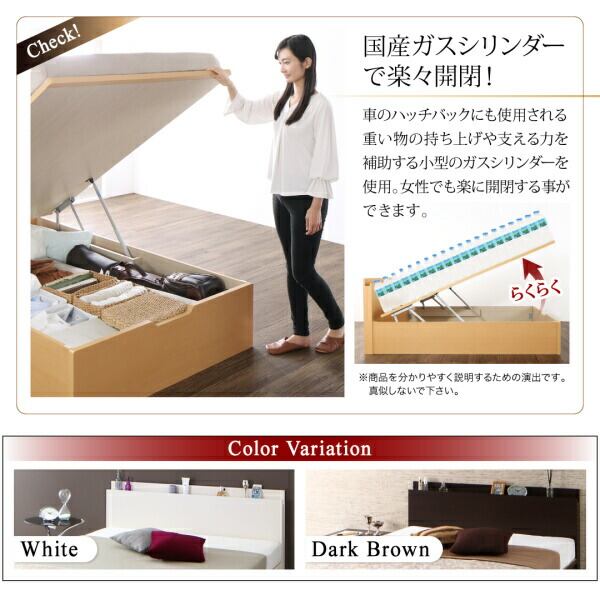 お客様組立 国産跳ね上げ収納ベッド ナチュラル 薄型プレミアムポケットコイルマットレス付き 横開き セミシングル 深さラージ
