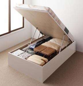 お客様組立 国産跳ね上げ収納ベッド 薄型プレミアムポケットコイルマットレス付き 縦開き セミシングル 深さラージ