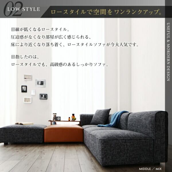 レイアウト自由自在 ユニットデザインコーナーソファセット ソファ&オットマンセット コンパクトタイプ 3P