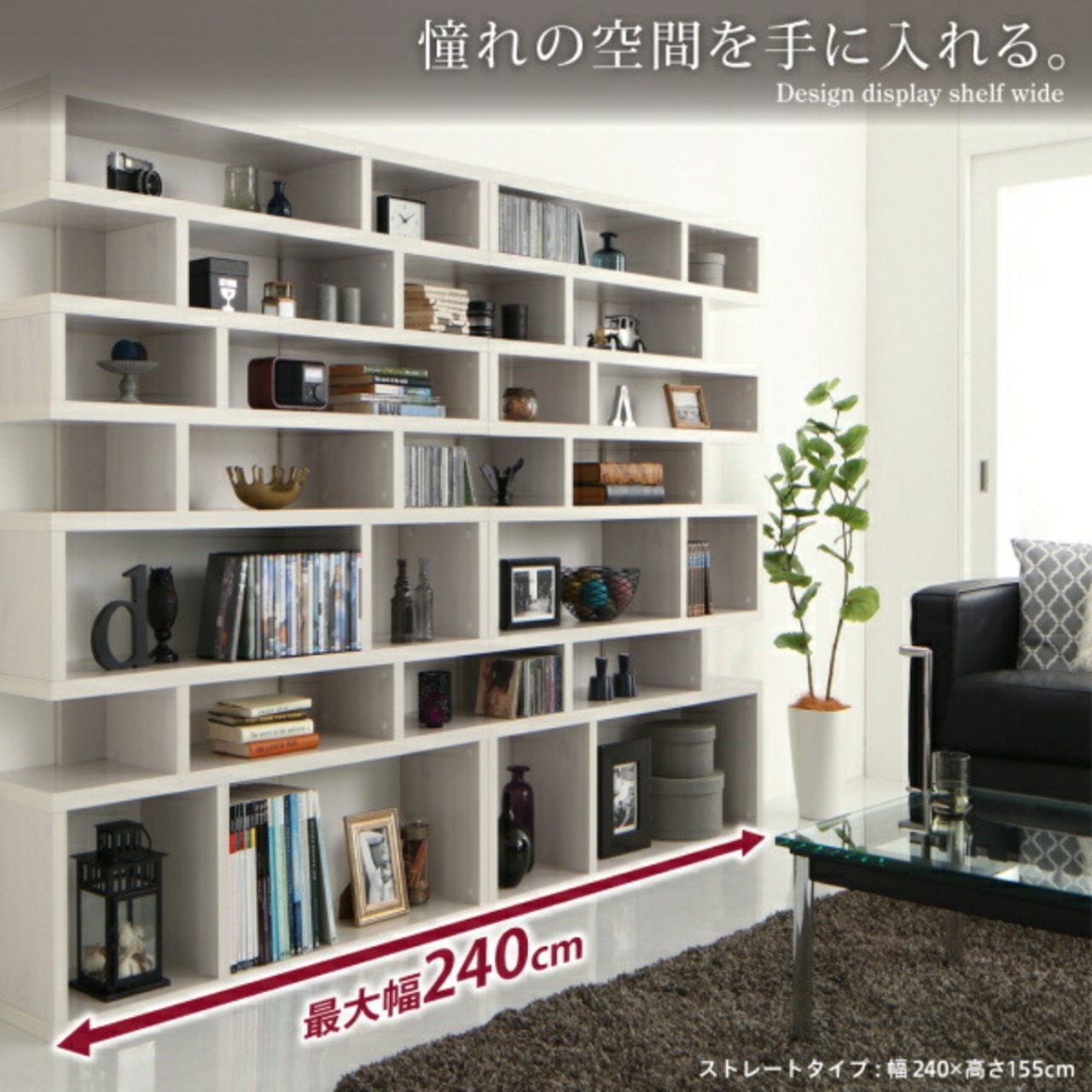 棚 シェルフ 本収納 デザインディスプレイシェルフ ワイド Urban line アーバンライン ストレート 幅180 高さ120