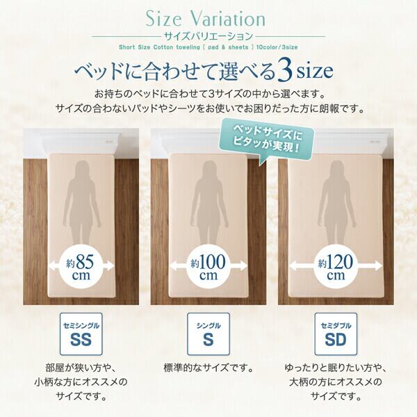 10色から選べるショート丈専用 ザブザブ洗えて気持ちいい コットンタオルのパッド・シーツ 敷きパッド 1枚 セミダブル ショート丈