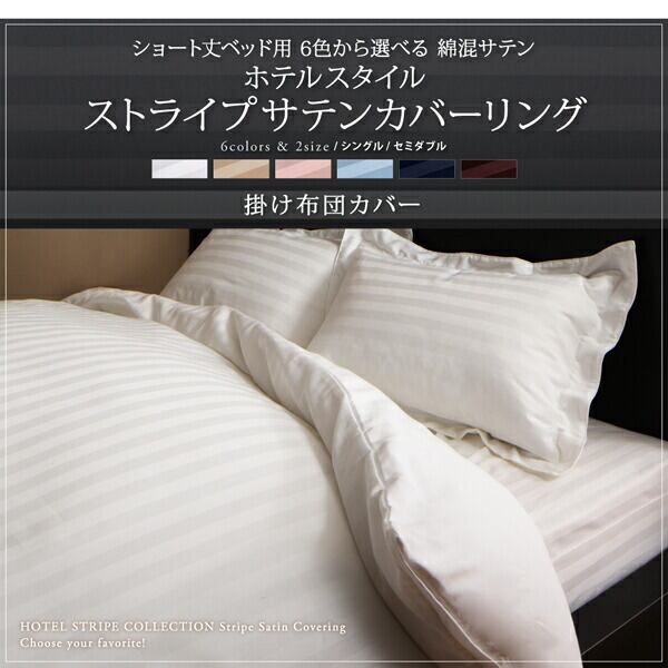 ショート丈ベッド用 6色から選べる 綿混サテン ホテルスタイルストライプカバーリング 掛け布団カバー シングル レギュラー丈