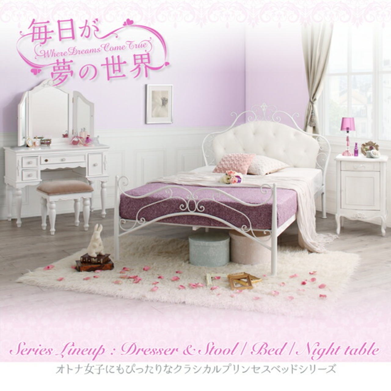 オトナ女子にもぴったりなクラシカルプリンセスベッドシリーズ サイドテーブル W40