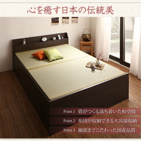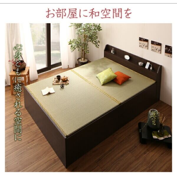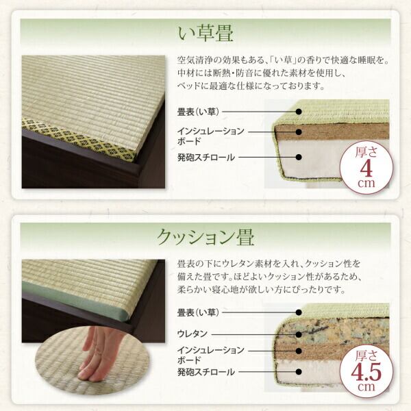 お客様組立 布団が収納できる棚・コンセント付き畳ベッド い草畳 シングル