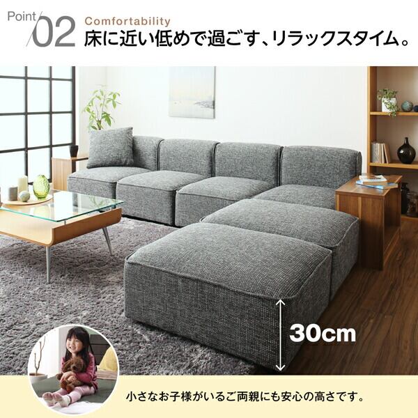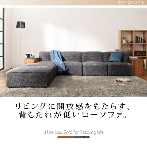 ワイドローソファ ソファ&オットマンセット スタンダード肘 2P