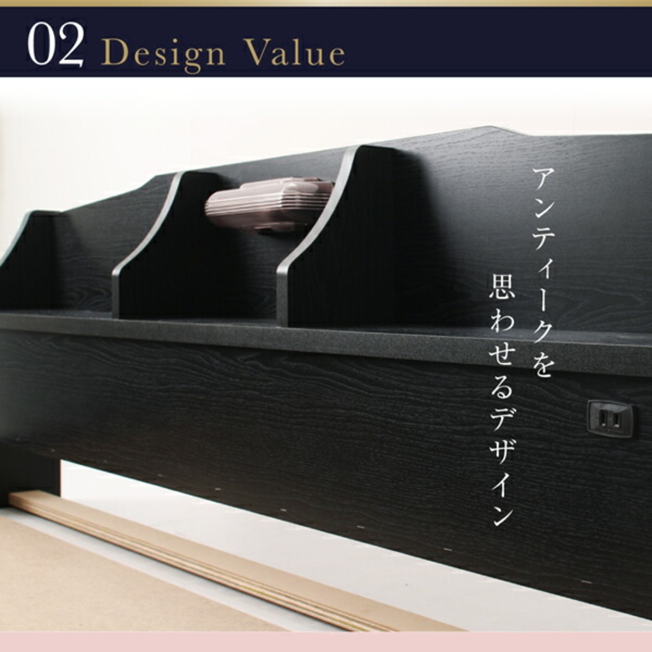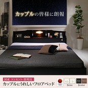国産 コンセント・照明付 カップルにうれしいフロアベッド ポケットコイルマットレス付き ダブル