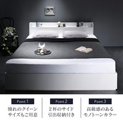 棚・コンセント付収納ベッド スタンダードボンネルコイルマットレス付き クイーン