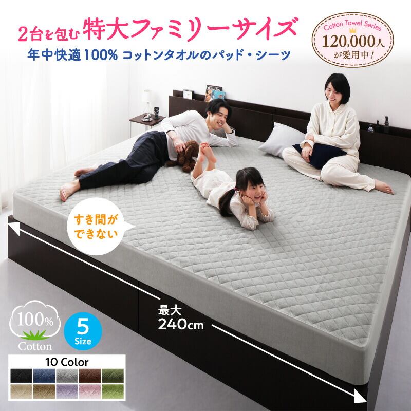 2台を包むファミリーサイズ 年中快適100%コットンタオルのパッド・シーツ キルトケット クイーン