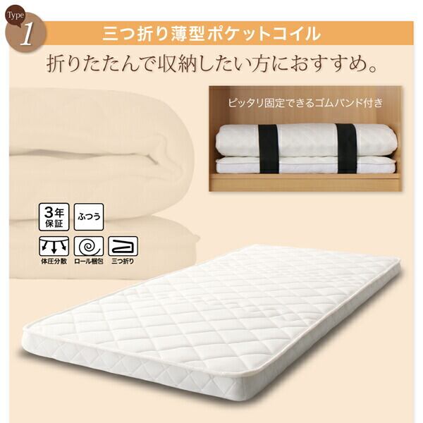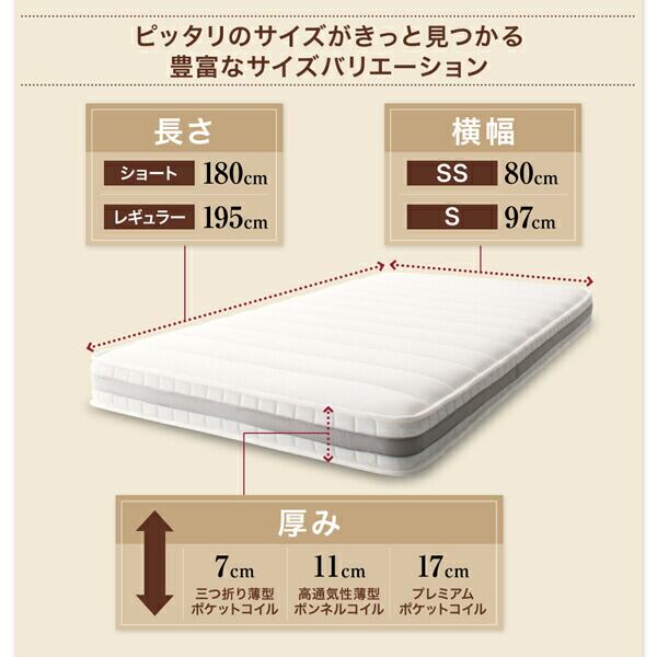 三つ折り薄型ポケットコイル シングル ショート丈 厚さ7cm