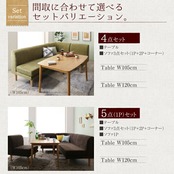 ダイニング5点セット(テーブル+2Pソファ1脚+1Pソファ2脚+コーナーソファ1脚) W120