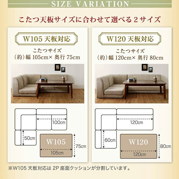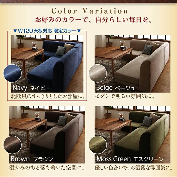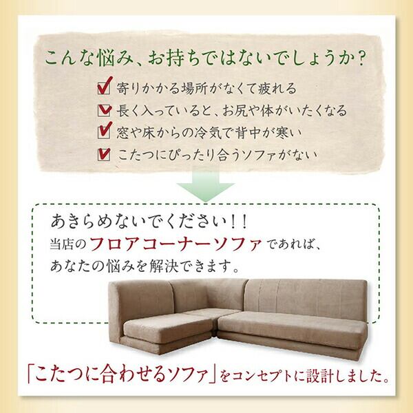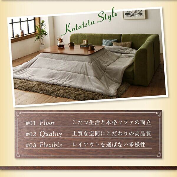 こたつ天板サイズに合わせて選べる洗えるフロアコーナーソファ W105天板対応サイズ 1P+2P+コーナー