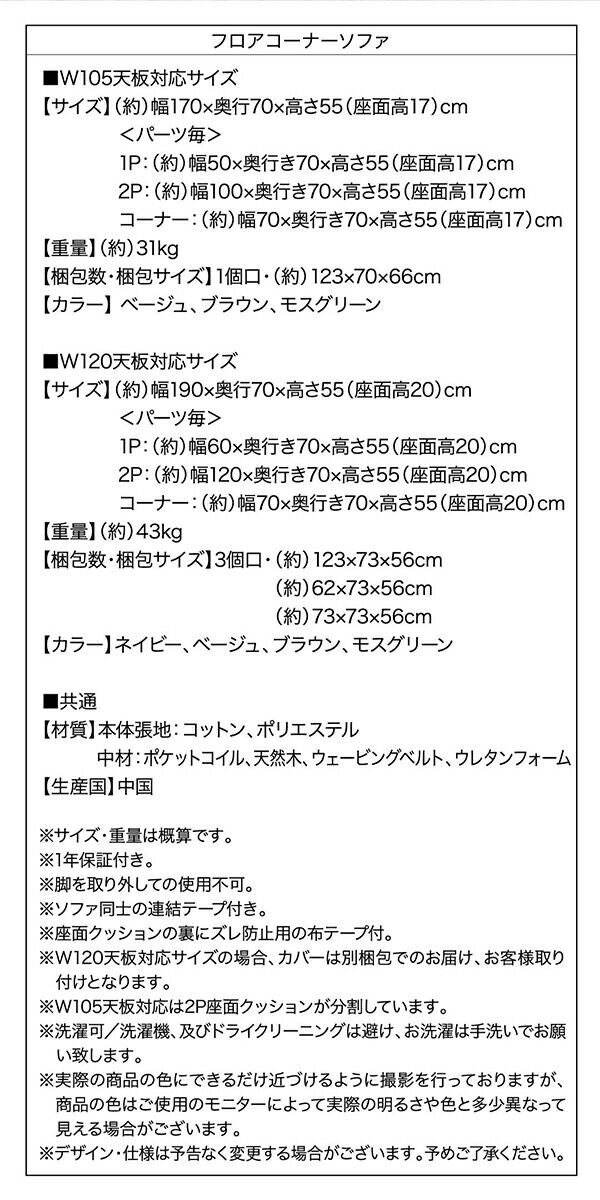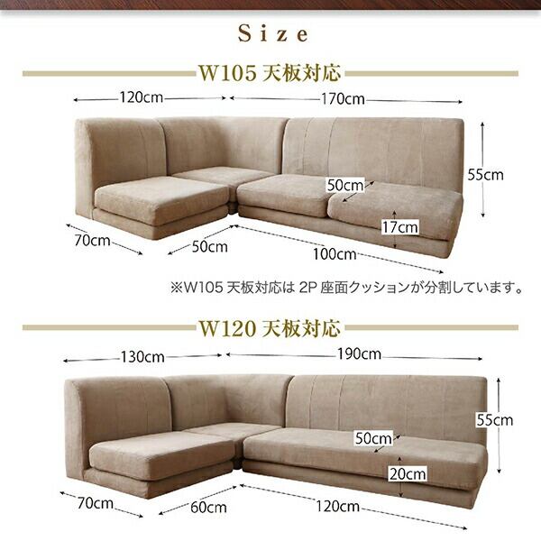 フロアコーナーソファ W105天板対応サイズ 1P+2P+コーナー