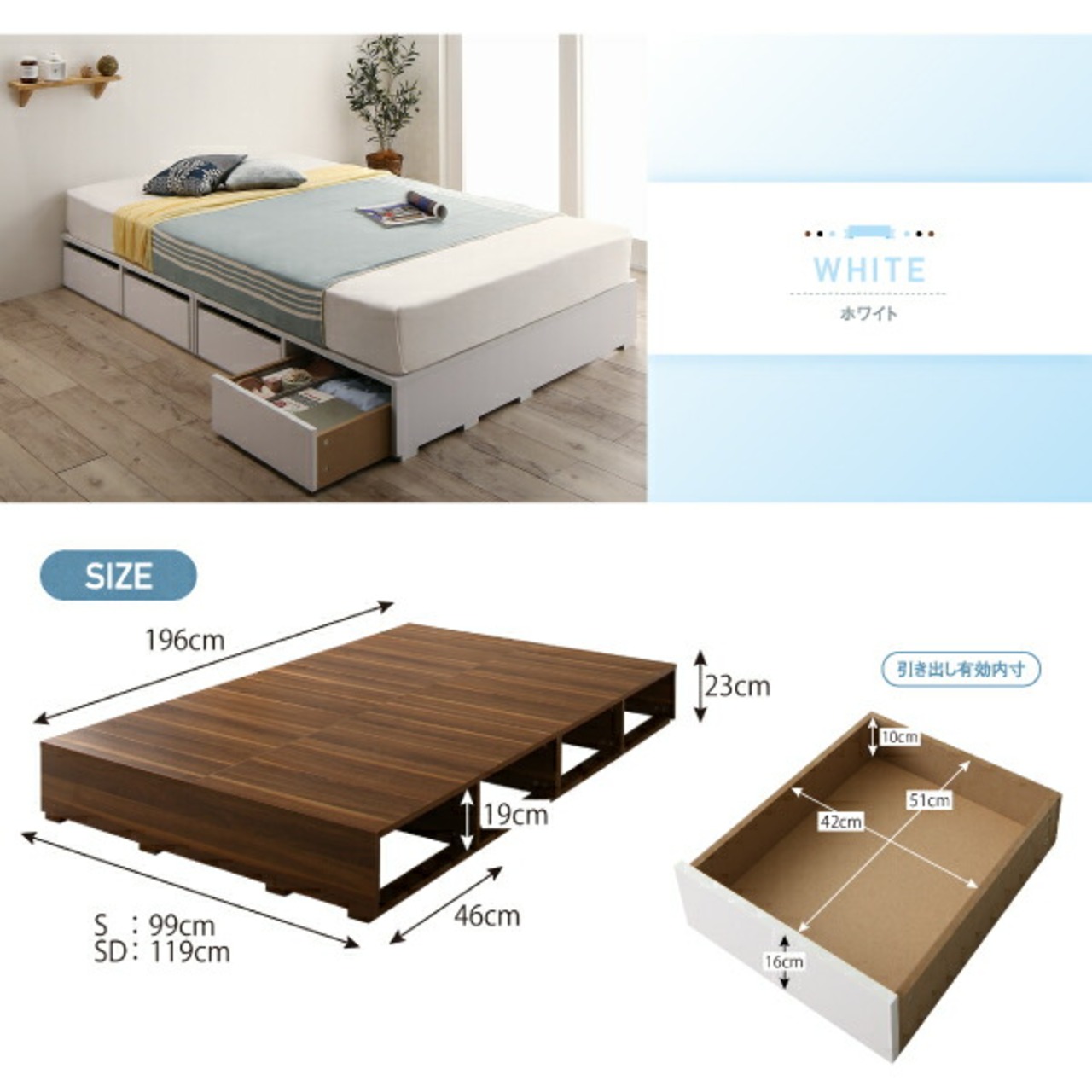 選べる引出収納付きシンプルデザインローベッド ベッドフレームのみ 引き出しなし セミダブル