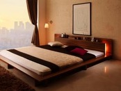 モダンライト・コンセント付き大型ローベッド 国産カバーポケットコイルマットレス付き シングル