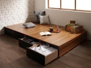 布団で寝られる おしゃれなヴィンテージ・モダン風 引き出し収納バイカラーベッド ベッドフレームのみ 引き出し4杯 セミダブル