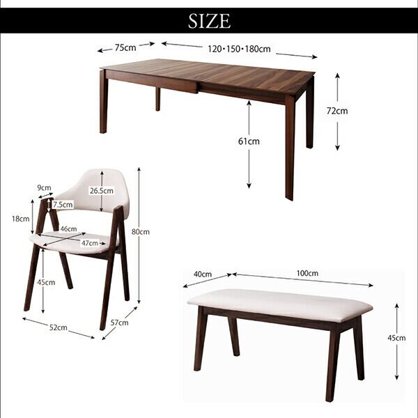 ダイニング7点セット(テーブル+チェア6脚) W120-180