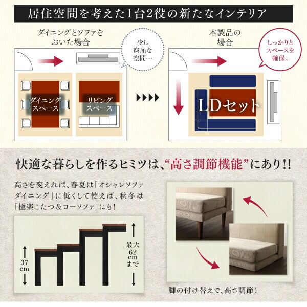 年中快適 こたつもソファも高さ調節 リビングダイニング ダイニングソファ 3点セット 1P+2P+コーナー