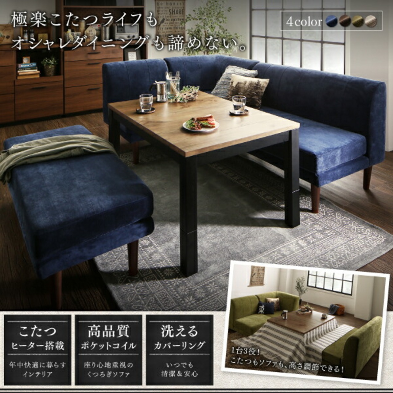 年中快適 こたつもソファも高さ調節 リビングダイニング ベンチ 2P