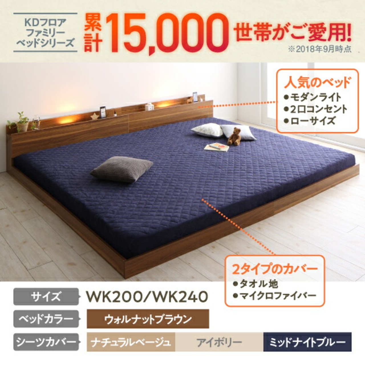 セットでお得 ライト・コンセント付大型連結フロアベッド 専用別売品 マイクロファイバー ワイドK240(SD×2) レギュラー丈