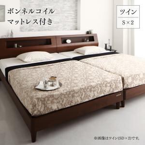 高級ウォルナット材ツインベッド ボンネルコイルマットレス付き ツイン(S×2)