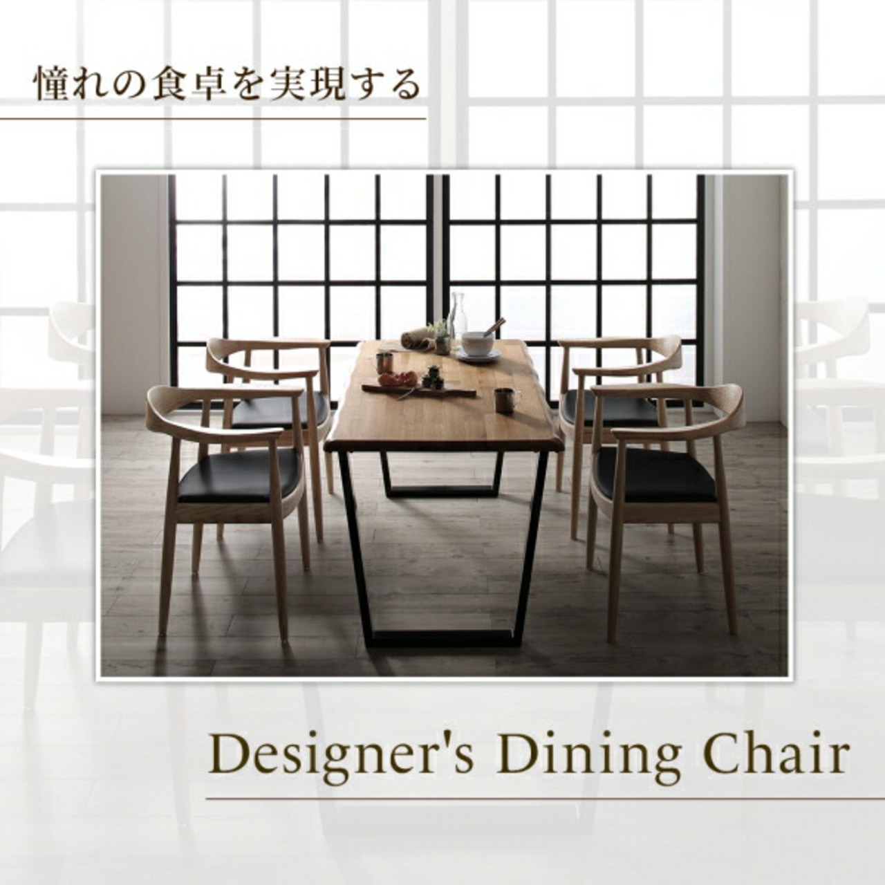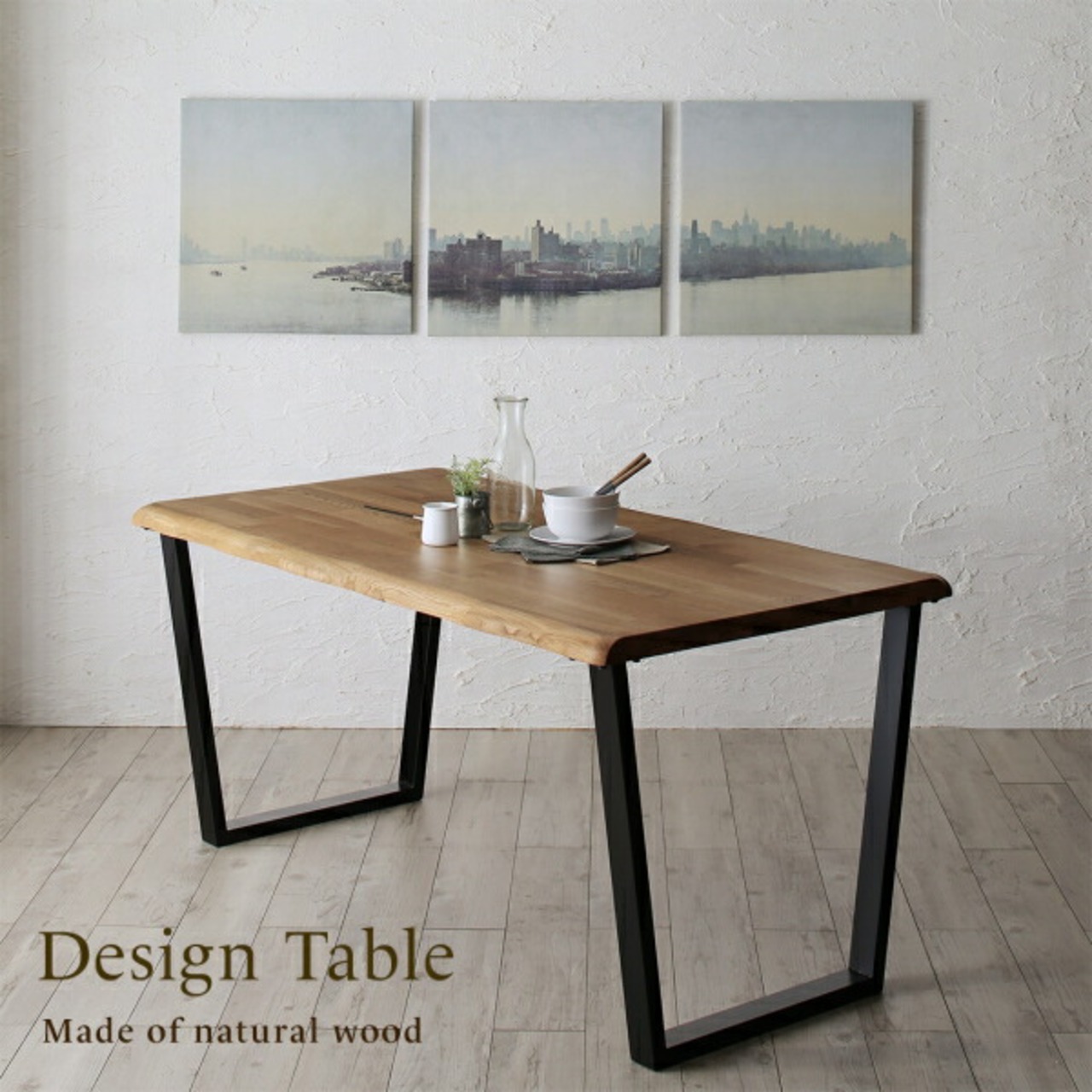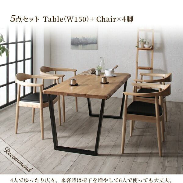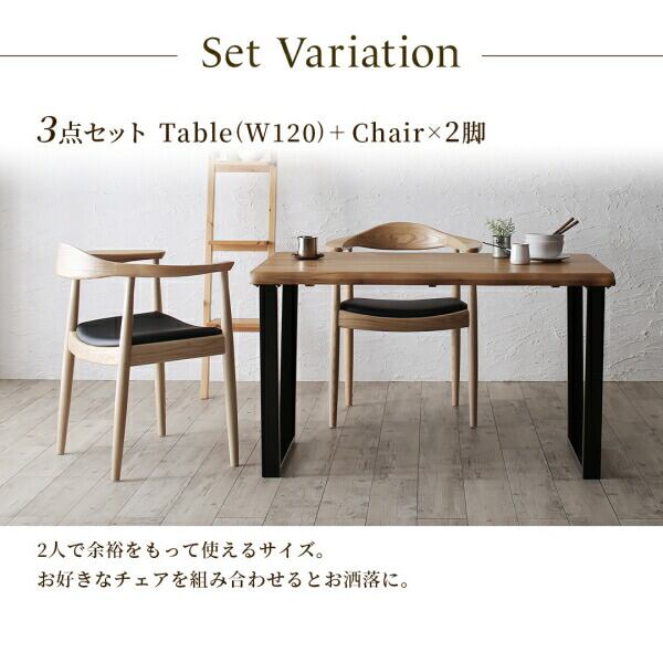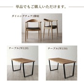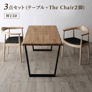 天然木オーク無垢材の高級デザイナーズダイニング 3点セット(テーブル+チェア2脚) W150