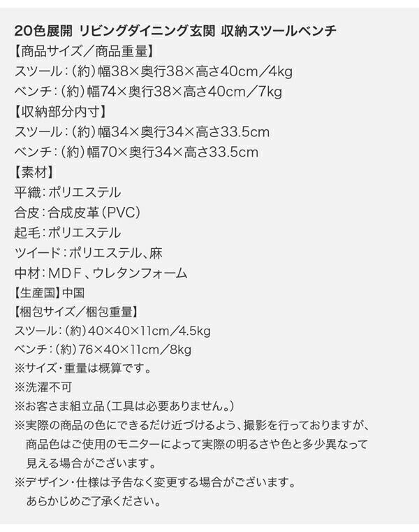 20色展開 リビングダイニング玄関 収納スツールベンチ スツール ベーシック生地 1P HACORO ハコロ