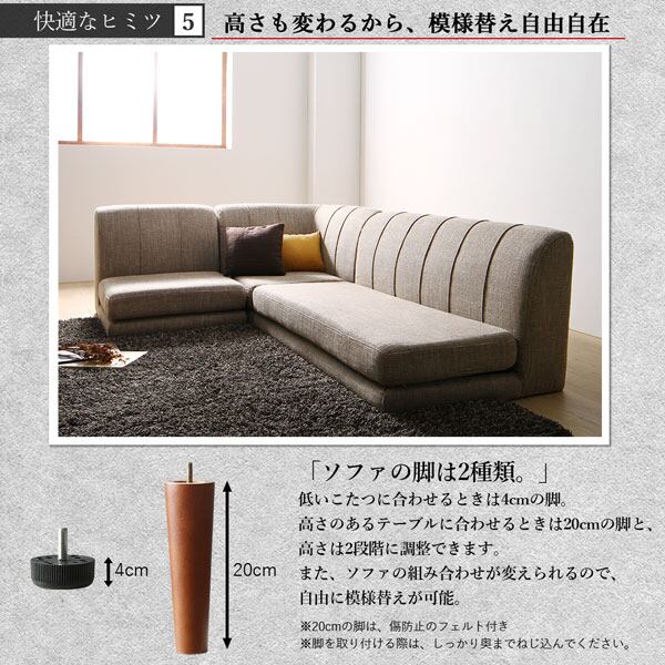 年中快適こたつもソファも高さ調節リビングダイニング 4点セット(テーブル+2Pソファ1脚+1Pソファ1脚+コーナーソファ1脚) W120