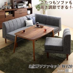 年中快適こたつもソファも高さ調節リビングダイニング 5点セット(テーブル+2Pソファ1脚+1Pソファ2脚+コーナーソファ1脚) W120